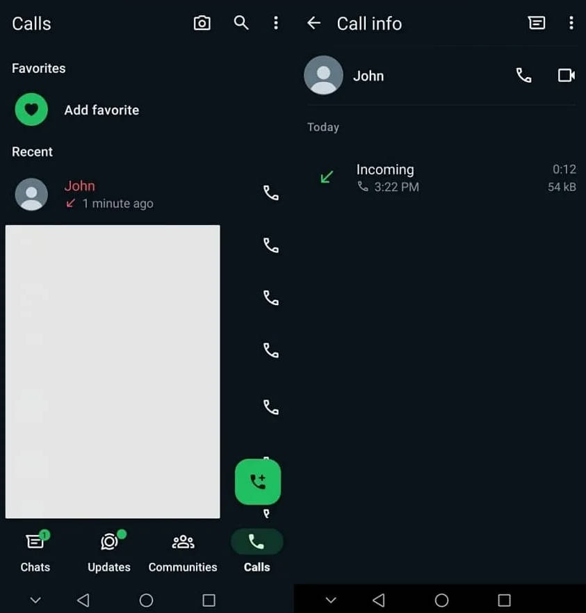 WhatsApp provides a native Calls tab that shows recent call activity directly inside the app. This method is simple and doesn't require any third-party tools.