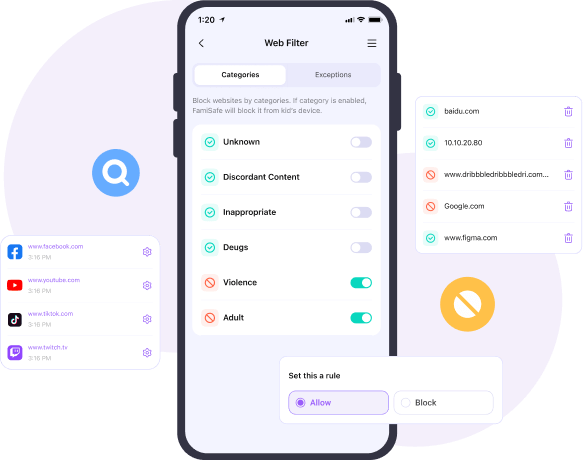 FamiSafe consente ai genitori di limitare il tempo trascorso sullo schermo dai propri figli, di tracciare la loro posizione in tempo reale e di rilevare contenuti inappropriati sui loro dispositivi.