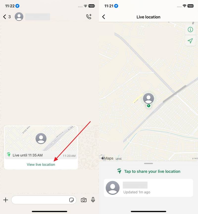 Step 2. Access the location on your iOS mobile and tap View Live Location. Afterward, you can view the location of your shared mobile phone remotely.