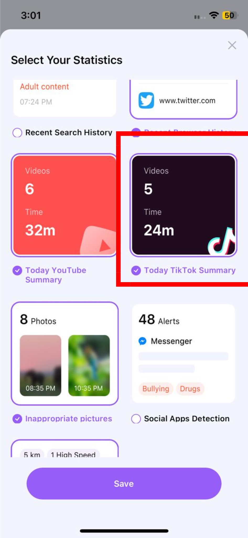 Step 2: You will need to connect the account first. Under Connect Accounts, tap Connect Account next to the social platform you would like to monitor. You will need to enter your kid's account information to connect.